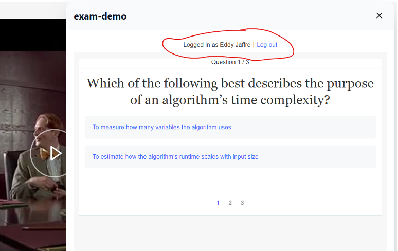 This will hide the logout button from the exam embed, preventing users from accidentally logging out during the exam.